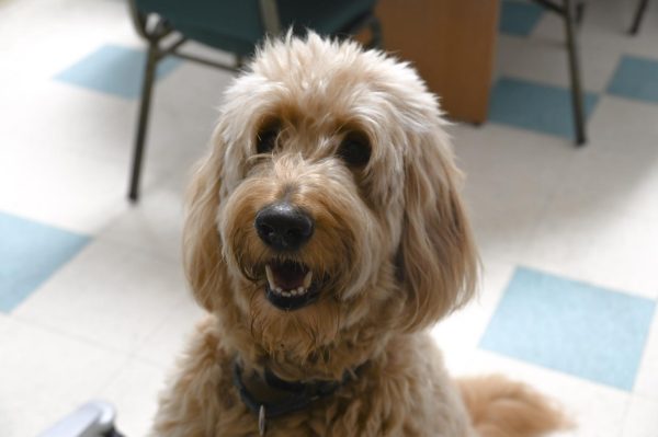 The students at Grier can also help in Auggie’s training. “A lot of [the students] help train him with me. So instead of letting him jump on them, they’ll make him sit and do tricks before they pet him, which is so good for his training,” Dr. Boudreau said. “The more that can happen, the better.”